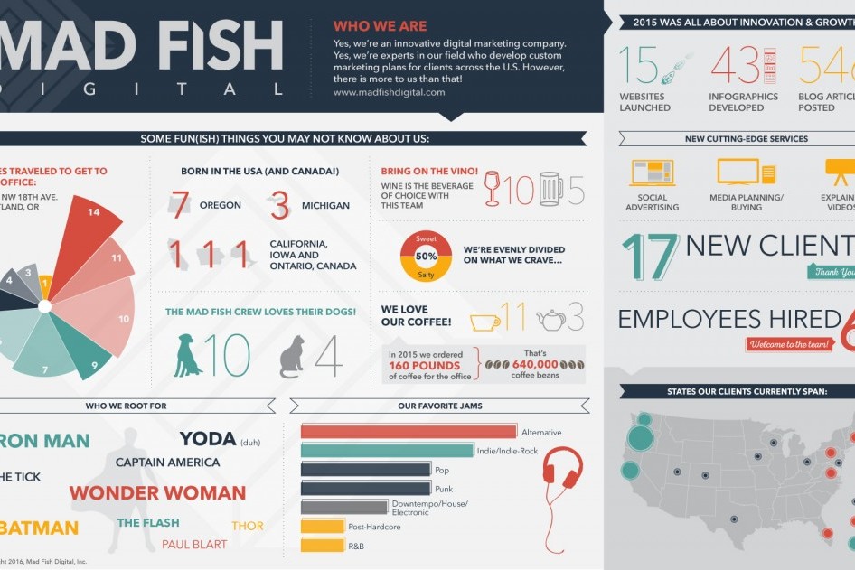 April 20, 2016Which Infographic Topic Should You Choose?by Corrie HermanContent Marketing March 31, 2016Your 10 Pre-Launch Essentials for Releasing a New Websiteby Corrie HermanSearch Engine Optimization February 24, 2016Happy Clients, Happy You: 5 Tips for Getting the Most Out of Your Company Reviewsby Corrie HermanSearch Engine Optimization January 15, 2016Who We Are: Get to Know the Mad Fish Teamby Corrie HermanMad Fish News November 4, 20153 Essential AdWords Optimization Tipsby Kylie FosterPaid Media October 7, 2015Maintaining Balance: Lessons in Digital Strategy Developmentby Nick WinkleblackSearch Engine Optimization September 23, 2015Mad Fish Digital’s Certified Houzz Marketing Specialistsby Jasmine PaulMad Fish News September 10, 2015Mad Fish Grows Organic Traffic 340% over 9 Monthsby Marcella McKeeCase Studies September 2, 2015Website Redesign for Health Care Provider Grows Organic Traffic by 147%by Marcella McKeeCase Studies September 1, 2015Rethinking Keyword Rankings: Advice on Best Practices & the Road to Successby Anne KrzysztalowiczContent Marketing August 19, 2015E-Commerce Business Grows AdWords Conversions by 35%by Marcella McKeeCase Studies August 19, 2015Google Panda 4.2: Slow but Steady Updatesby Jasmine PaulSearch Engine Optimization July 23, 2015Seeing is Believing: Capture & Engage Your Audience with Visual Contentby Jasmine PaulContent Marketing May 11, 20155 Reasons WHY Content is King in SEOby Louis KowalskiContent Marketing April 6, 2015Mad Fish Digital Announces the Acquisition of Digital Aptitudeby Corrie HermanMad Fish News January 30, 20153 Google AdWords Features You Didn't Know Aboutby Zeke CamusioPaid Media January 22, 2015Before Doing Any Marketing, Do Thisby Zeke CamusioDigital Aptitude January 12, 20153 Tips for Retargeting Content with Facebook Website Custom Audiencesby Stefani VarneySocial Media January 7, 2015Can Summer Interns Benefit Your Company?by Jenny VillalobosDigital Aptitude January 5, 2015You-Who? Optimizing YouTube Videos to Avoid Getting Lost in the Shuffleby Anne KrzysztalowiczSocial Media December 29, 2014End of the Year Roundup: Mad Fish’s Biggest Blogsby Stefani VarneyMad Fish News December 22, 2014Are Your AdWords Campaigns Neglecting Negative Keywords?by Jed KentPaid Media December 16, 2014Feeling Antisocial About Social Media? You’re Not Alone.by Jasmine PaulSocial Media December 8, 2014Mad Fish Moves!by Stefani VarneyMad Fish News November 26, 2014Optimizing YouTube for Your Businessby Zeke CamusioSearch Engine Optimization November 21, 2014Make Email Drip Campaigns Work For Youby Marcella McKeeContent Marketing November 18, 2014Our 4 Favorite Free Social Media Toolsby Louis KowalskiSocial Media November 13, 2014Breaking Down Email Drip Campaignsby Marcella McKeeContent Marketing November 5, 2014Demystifying Website Speed: Load Time Goals, CDN Usage and Other Questionsby Corrie HermanWeb Development,Search Engine Optimization October 30, 2014What “The Voice” Can Teach You About Online Marketingby Mad Fish SEOPaid Media